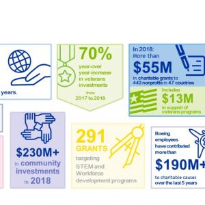 CHICAGO, November 19, 2018 /3BL Media/ – Boeing [NYSE: BA] corporate giving will exceed $230 million in 2018, driven by $55 million in new charitable grants, as well as increases in business and employee contributions.