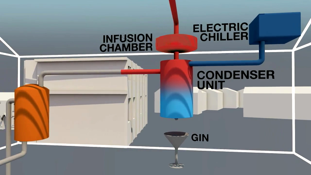Nothing goes to waste during the distillation process as energy reduction starts with the high-tech biomass boiler, which uses low-tech materials or any suitable organic matter such as the spent botanicals used in the gin-infusion process and wood chips to superheat water. Once heated, steam leaves the biomass boiler, travels across the 18th century courtyard to the antique stills where alcohol is boiled, turns to steam and enters the copper baskets that hold the 10 fragrant botanicals, which impart the taste that is unique to BOMBAY SAPPHIRE gin. The infused vapor is then cooled in a condenser, turning it into high-strength gin.