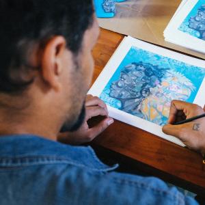 The longstanding association between Bombay Sapphire and Hebru Brantley was first established in 2011, when Brantley as an up-and-coming artist qualified as a finalist for the Bombay Sapphire Artisan Series — a nationwide search for the next big names in visual arts with a focus on fostering rising talents and undiscovered voices. As a part of the prize, Brantley’s work was showcased at Scope Art Fair the following year, propelling his work onto the global art scene and attracting the attention of major brands and cultural icons alike, including hip-hop mogul Jay-Z who purchased one of his pieces — a testament to the exceptional caliber of talent who received exposure from the brand’s annual emerging arts competition.