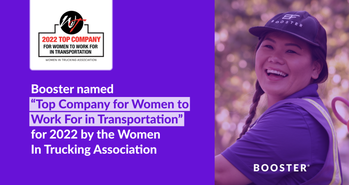 November 3, 2022 /3BL Media/ - Booster®, a leading tech-driven mobile energy delivery company, is honored to announce that it has been recognized as a “Top Company for Women to Work For in Transportation” by the Women In Trucking (WIT) Association.