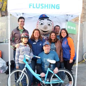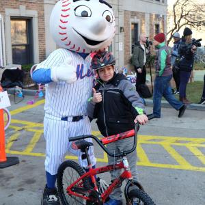 Last weekend, with the help from Mr. Met, the Flushing YMCA in Queens and the Bedford Stuyvesant YMCA in Brooklyn, we distributed 400 new bicycles (and bike helmets!) to children in Bike NY’s free bike education programs. For many students, it was their first opportunity to ride their very own bike. The remaining 600 bikes will be distributed this coming weekend in the Bronx, Manhattan and Staten Island.