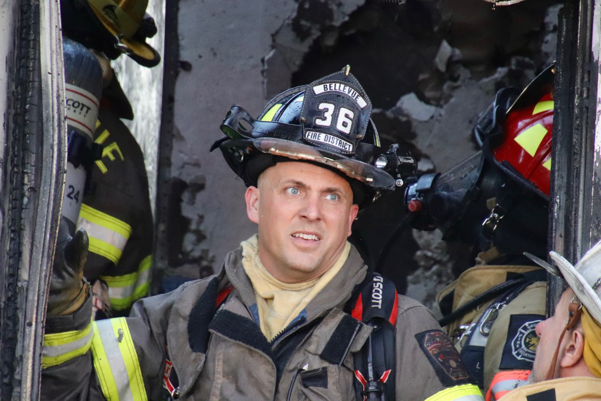 Later, as he passed by his locker of tactical gear at the fire station where he is still an active volunteer firefighter responding to emergencies in his free time, he picked up his black helmet — just one of many hats he’s worn as a public servant and now at T-Mobile.
