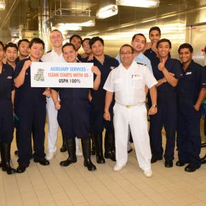 To earn a 100 score, cruise ships must receive perfect marks on all 44 items that comprise the U.S.P.H.’s comprehensive Vessel Sanitation Program checklist. The unannounced inspections, which are conducted twice a year and required for any cruise ship with an international itinerary calling at a U.S. port, evaluate vessels in a wide variety of areas, including adherence to proper food handling, preparation and storage procedures, and overall galley cleanliness. Ships’ potable water supplies used in spas and pools are evaluated, as well.