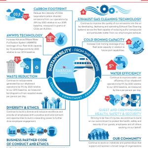 As highlighted in the report, Carnival Corporation has established 10 goals for reducing its environmental footprint over the next five years, while enhancing the health, safety and security of its guests and crewmembers, and ensuring sustainable business practices among its brands, business partners and suppliers. Three of the 10 goals focus on developing, deploying and operating exhaust gas cleaning systems for clean air emissions, increasing cold ironing capacity and further reducing the intensity of equivalent carbon dioxide emissions (CO2e). View Carnival Corporation’s 2020 sustainability goals infographic here.