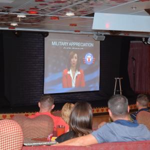 The red carpet was rolled out for the couples who came on board for a day-long escape that included lunch and a comedy show with sets by Carnival Cruise Line comedians Jim Brick and Chase Elstner. To honor the attendees for their service to our country, Carnival also presented their Military Appreciation Salute, a tribute that is held for active and retired military personnel and their families who sail on every cruise. The salute features the showing of the colors (flags), the branch songs and National Anthem, concluding with all members of the military being invited on stage for a group photo.