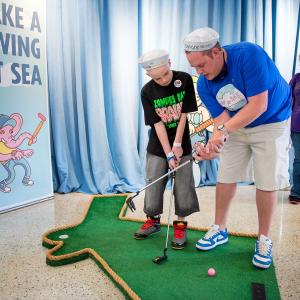 Hosted by Carnival’s cruise director extraordinaire Butch Begovich and members of the line’s entertainment team, the event was modeled after a typical day at sea aboard the line’s “Fun Ships,” with activities such as limbo, mini-golf and nautical-themed arts and crafts, along with music, giveaways, fun photo opportunities, and even an ice cream sundae bar. A tropical, cruise-themed décor, including a backdrop of a Caribbean sky inspired by the “Day at Sea” theme, added to the fun atmosphere.