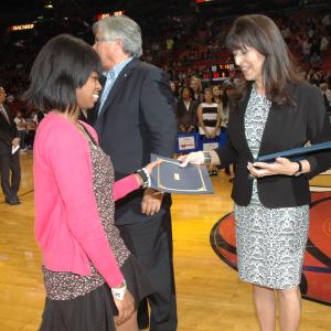 The scholarships, purchased by Carnival Foundation, were handed out at center court by Linda Coll, with a congratulatory handshake given to each student by Micky Arison, chairman of Carnival Corporation and managing general partner of the Miami HEAT. Miami-Dade Superintendent of Schools Alberto Carvalho and representatives from Florida Prepaid College Foundation, Big Brothers Big Sisters of Greater Miami and the HEAT, including former HEAT star center and current Vice President of Player Programs Alonzo Mourning, were on hand to acknowledge the students.