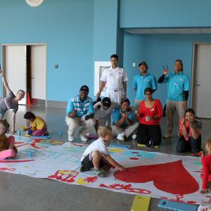 Last week during a port call in Saint John, New Brunswick, more than a dozen Carnival Glory crew members participated in a “day of service” sponsored by the port, creating a large colorful mural with local children from inner-city schools.