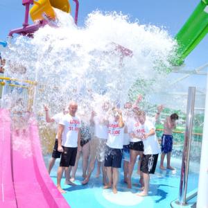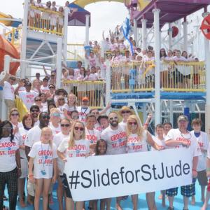 June 24, 2015 /3BL Media/ - To commemorate the five-year anniversary of Carnival Cruise Line's partnership with St. Jude Children's Research Hospital, Carnival launched a "Slide for St. Jude" initiative which raised $50,000 for the hospital. To kick it off, guests and crew were encouraged to slide down one of the shipboard water slides during a special fleetwide event and, for each person who did so, Carnival donated up to $10 to St. Jude Carnival's President Christine Duffy took the first plunge - down the Carnival Breeze's 312-foot-long Twister water slide.