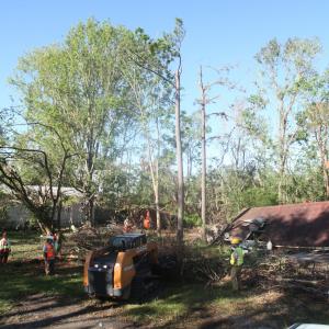 The area was hit with its second major hurricane of the season on October 9, Hurricane Delta, while cleanup operations were still in full swing. Team Rubicon volunteers evacuated and then transitioned to route clearance as they returned to the Lake Charles area. Local equipment support is being provided by CASE dealer Progressive Tractor.