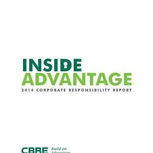 “Inside Advantage”, CBRE’s 2014 Corporate Responsibility Report, was developed in accordance with the Global Reporting Initiative (GRI) G4 guidelines at the Core level and includes the company’s progress toward implementing the Ten Principles of the United Nations Global Compact.