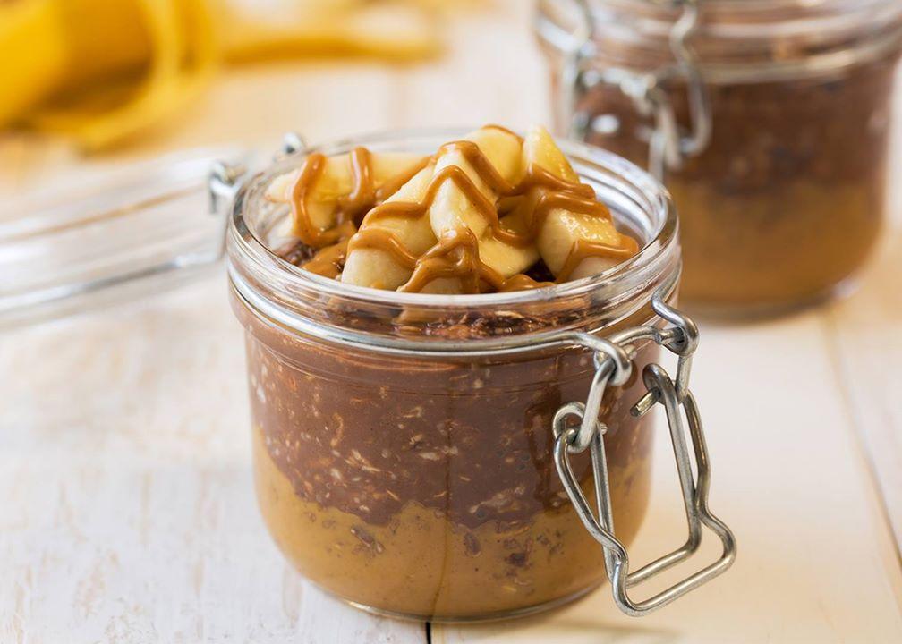 Mocha Overnight Oats with a Peanut Butter Swirl