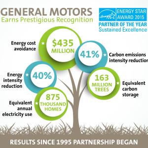 - ENERGY STAR names GM a Partner of the Year for energy management, citing our commitment to energy efficiency, reductions in greenhouse gas emissions and $15 million savings in annual energy costs.
