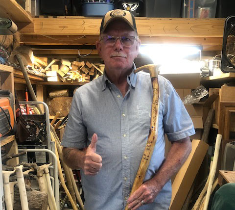 Every year, Guy collects donations of Christmas trees to recycle into custom wooden canes for retired military members across the country. He creates each cane himself, crafting sentimental elements that pull from his own experiences as a veteran.