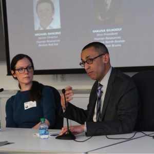 Michael Danubio, Senior Director of Human Resources for the Boston Red Sox (MLB); Shauna Gilhooly, Vice President of Human Resources, TD Garden and Bruins (NHL); and John Quinones, Director of Talent Acquisition, National Football League (NFL) discussed their respective organization’s efforts to reflect greater diversity in their front offices and the challenges that have hindered progress.
