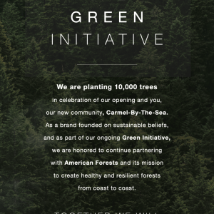In celebration of the first Arhaus Studio opening and in honor of Carmel-by-the-Sea, Arhaus is partnering with American Forests to plant 10,000 trees in the United States. American Forests is the oldest nonprofit conservation organization in the country and focuses on creating healthy and resilient forests from coast to coast. As a brand founded on sustainable beliefs, and as part of its ongoing Green Initiative, Arhaus is honored to continue supporting American Forests and its mission.