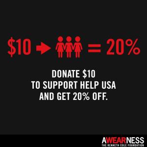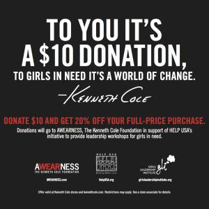 All funds raised from the program will be donated to AWEARNESS, The Kenneth Cole Foundation with the first $30,000 earmarked for HELP USA in support of GLI. Additional funds raised through the program will be donated to other charitable initiatives worldwide.