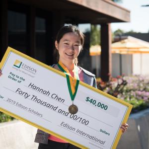 Hannah is one of 30 high school seniors selected from among 722 applicants to be awarded an Edison Scholars scholarship this year. To qualify, the recipients must live in SCE’s service area, have at least a cumulative 3.0 GPA, show financial need and plan to pursue studies in the fields of science, technology, engineering or math (STEM) at a four-year accredited college or university.