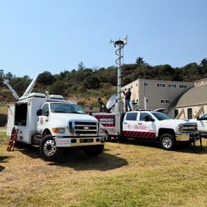 During 2020’s West Coast wildfires, including the summer CZU Lightning Complex Fires in San Mateo and Santa Cruz counties, the team delivered connectivity to hundreds of displaced evacuees who were transported in RVs to a local church in Soquel, CA with a SatCOLT, and were able to put up another cellular bubble of coverage around the building itself. “They also didn’t have any wireline services there, so we brought in a flyaway satellite kit and put up another WiFi network so that not only T-Mobile customers had a way to communicate, but anyone with a device regardless of carrier could communicate out,” says Muilenburg.