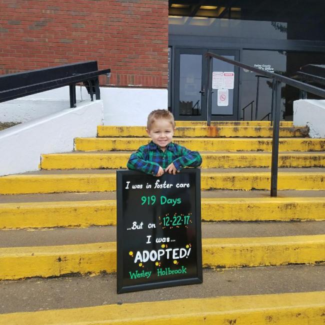 Little Wesley waited nearly three years in foster care, but today he and his family are celebrating their future! The Holbrooks adopted Wesley and now he never has to wonder again who will help him with his homework and who will pick him up after school. He will have someone to wave to when he crosses the stage at graduation and his children will have grandparents.