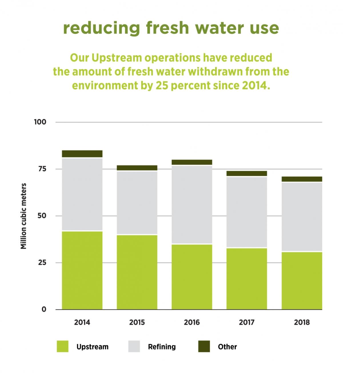 - Reducing the amount of fresh water withdrawn from the environment in our Upstream operations by 25 percent since 2014.