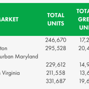 Denver took the top spot with 7 percent of the market’s multifamily apartment units certified as “green”, followed by Washington DC/Suburban Maryland with 6.9 percent and Seattle at 6.5 percent.