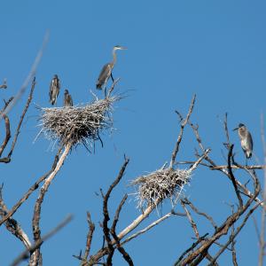 There are four natural wetlands on the property, comprising approximately 17 acres. The wetlands are an important habitat for great blue herons, which have formed a rookery (nesting colony) on the property, consisting of 20 nests with approximately 30 birds. The water levels and water quality of the wetlands are maintained for the herons and other wildlife through engineering controls which direct road runoff away from the wetlands, direct precipitation into the wetlands, and minimize erosion and silt entering the wetlands.