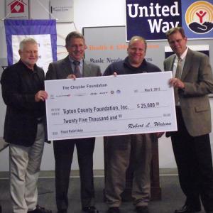 “The Chrysler Foundation recognizes that natural disasters such as this can have overwhelming social and economic impact on both individuals and communities,” said Brian Harlow, Vice President, Head of NAFTA Powertrain Operations and Global Powertrain Manufacturing Engineering – Chrysler Group LLC. “Chrysler hopes that by joining hands with United Way of Howard County and the Tipton County Foundation, we can help area residents get back on their feet and into their homes.”