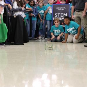 The STEM Day engineering design challenge included nine teams showcasing their very own creations, which consisted of the design and build concept of a vehicle powered solely by the energy of a mousetrap. Judging criteria included understanding of the project, the quality of their printed and oral presentations (70 percent) and the team’s race time (30 percent). Each member of the overall design challenge champion team, Bronco STEM Squad of Moss Bluff Elementary, won a Kindle Fire and Ozobot. Dolby Engineers of Dolby Elementary received the People’s Choice award. Each team member received an Ozobot.