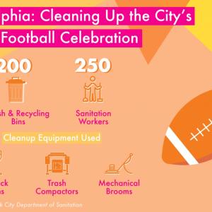 The city of Philadelphia’s football team won the big game for the first time ever and its long-suffering fan base celebrated the victory in kind. In February, the city held a massive parade for its football team, a turnout that some estimated teetered over 700,000 people (a spokesman for the City of Philadelphia did not have an official tally). With this great turnout came its inevitable byproduct: trash. Lots of trash. Roughly 90 tons of trash, the most the city has ever generated for a single event and nearly double its previous record of 58 tons for a victory parade for its baseball team in 2008.