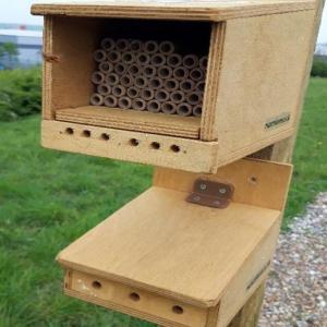 The New Holland Agriculture tractor plant in Basildon, England, set up an ongoing project with Mason Bees UK for the conservation of solitary bees. The plant purchased bee lodges and a number of cocoons of red mason bees, which emerged in April, benefitting the nearby flora through pollination. At the end of each summer, the nesting tubes full of larvae are sent back to Mason Bees for overwinter storage that, in return, sends the plant new cocoons each spring.