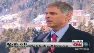 At the World Economic Forum in Davos, CNN's John Defterios speaks with Hilton Worldwide CEO Chris Nassetta about growth and tackling youth employment. Hilton Worldwide and the International Youth Foundation (IYF) released a white paper at the highlighting solutions to youth joblessness that the hospitality industry is positioned to provide.