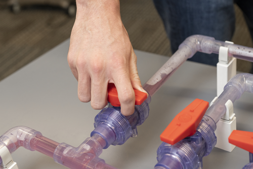 With the support of the L&D team, Loos was able to bring her vision to life. The clear piping used in the model helps the learners see how product flows through the system and colored water indicates different light products in the model.