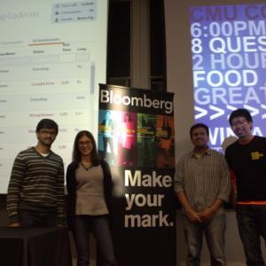 Aside from owning CMU bragging rights, Jakub, Raymond and Jason will join students from the 11 other universities vying for the Bloomberg Cup. During the finals in New York they will have the opportunity to compete side by side with their peers from around the US in the dynamic environment of our global headquarters at 731 Lexington Ave.