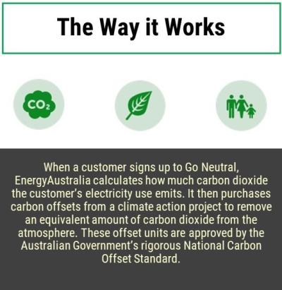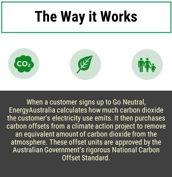 EnergyAustralia introduced the Go Neutral programme in 2016 to encourage customers to combat climate change by offsetting the carbon emissions of their electricity use, at no cost to them.