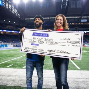 Through a partnership with the football team, Comerica Bank pledged $100 for every first down the Lions made at home games accumulating to $18,000. The gift supports Beyond Basics and their literacy programs.