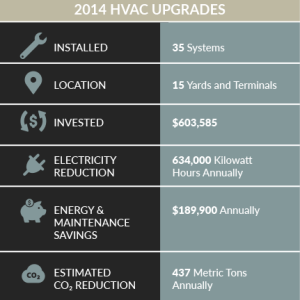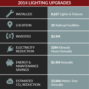 Norfolk Southern is installing energy-efficient lighting and heating and cooling systems at facilities across our network to reduce electricity consumption, greenhouse gas emissions, and operating costs.