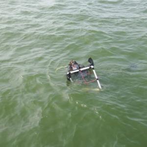 We were able to achieve a seemingly impossible goal of conducting an oyster survey in water where the visibility was close to zero (meaning you could barely see your hand or a dolphin directly in front of your face). I jokingly refer to the dives we did in Galveston Bay as “blind dives,” and even though I was diving with a partner who I knew was only a couple of feet away, it felt like I was alone because I was unable to see him. However, to ensure we were always together underwater, we used our survey quadrant, as a tether. Diving in teams of two, each diver held on to a side of the square as we swam along the transect survey line. Surface support divers constantly watched our bubbles to ensure we were together and heading in the right direction as navigating with a compass was difficult in such low visibility.