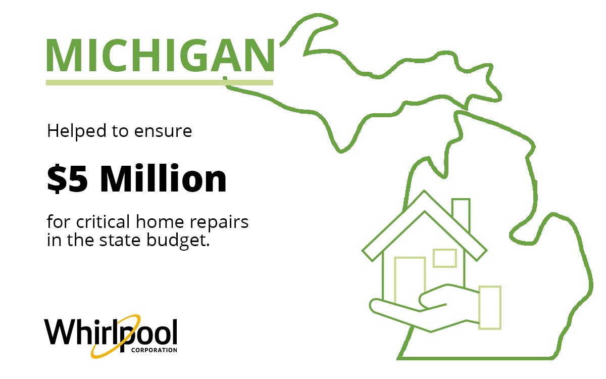 Below is a roundup of the policy wins experienced through the Cost of Home campaign to date by Habitat for Humanity affiliates in areas where Whirlpool Corp. is located: