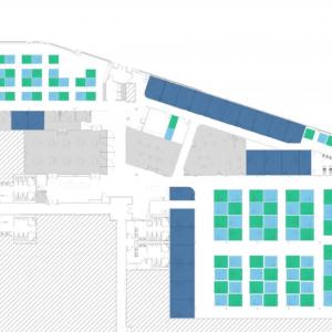To use the existing layouts and furniture, occupancy reductions, circulation paths and assigned seating can be modified to accommodate physical distancing recommendations.