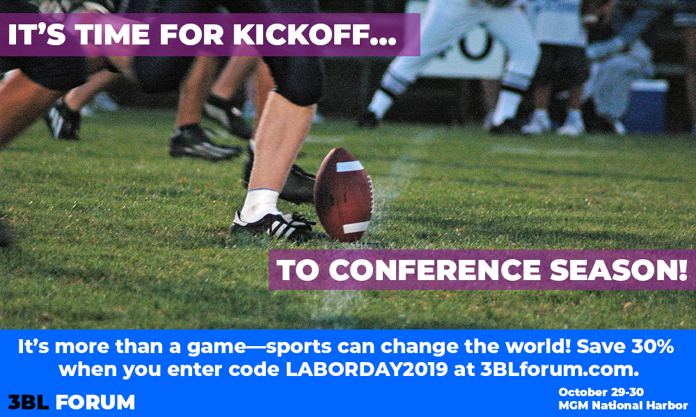 Register for 3BL Forum by Sept. 6 using the code LABORDAY2019 at checkout to receive 30% off your tickets to hear our first-ever panel discussion on sustainability and the power of sports!