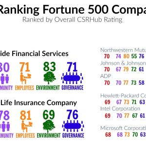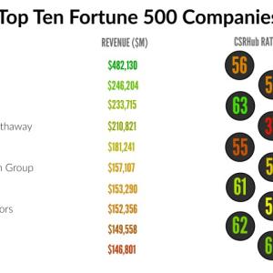 While Fortune 500 companies are ranked by their annual revenue, Skytop Strategies analyzed their CSR ratings using CSRHub to see how they measure up in terms of corporate social responsibility.