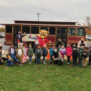 In Grand Rapids, 250 preschoolers at two YMCA early childhood programs got a socially distanced visit from a masked Daniel Tiger, along with PNC Regional President Sean Welsh. They were among 1,500 pre-K kids across 12 locations who received gift bags that included books, crayons, coloring pages, and Long Distance Hug postcards to send to family, friends and nearby senior centers. During the week prior to the event, teachers incorporated Daniel Tiger resources into their lessons.