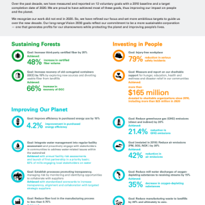 Last year the company introduced its Vision 2030 goals, which demonstrate its commitment to building a better future for people and the planet and which build on the progress the company made toward its 2020 goals. The company begins measuring progress toward its Vision 2030 goals this year.