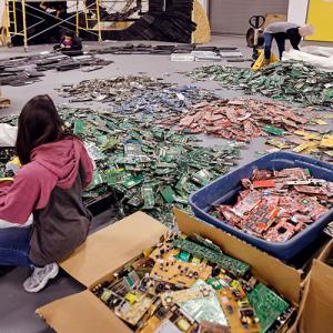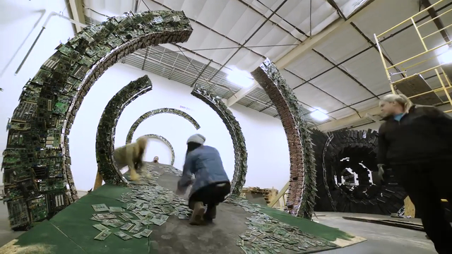 He built much more than just the portal from 4,100 pounds of e-waste — the approximate amount of e-waste an American might use over their lifetime. And, the results are stunning. But, he didn’t pull this off alone.