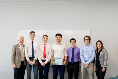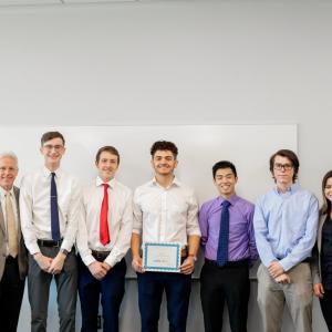These sessions became filmed pitch videos for the online portion of the competition, where viewers could vote for their favorite team innovation. This year’s winner of the online vote, Team AquaGreen Hydroelectric Energy (Jennifer Alfaro, Kenny Do, Phillip Espinoza, Zachary Keitel, Matthew Minter and Alexandro Morales), earned the People’s Choice Award and an extra judge’s vote in the finals for developing a device to capture electrical energy from industrial water usage.
