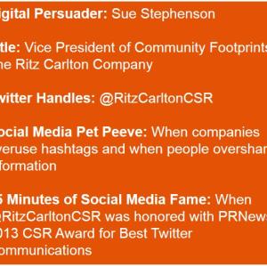 “The power, and the thing that we enjoy most about social media—in my case, particularly @RitzCarltonCSR—is that it enables you to engage. It enables you to get feedback, and it enables you to develop further relationships,” Sue explains.