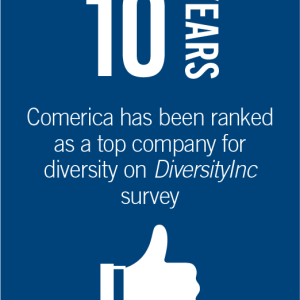 For metrics and success highlights of Comerica’s Diversity & Inclusion, review our corporate responsibility report at comerica.com/sustainability.