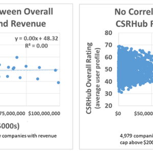 See No Correlation Between Overall CSRHub Rating and Revenue and Market Cap charts.