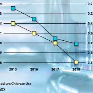 Since 2015, Domtar has reduced sodium chlorate use 9 percent per ton of pulp, which resulted in cost savings and reducing AOX discharges in our mills’ final effluent by 17 percent over the same period.